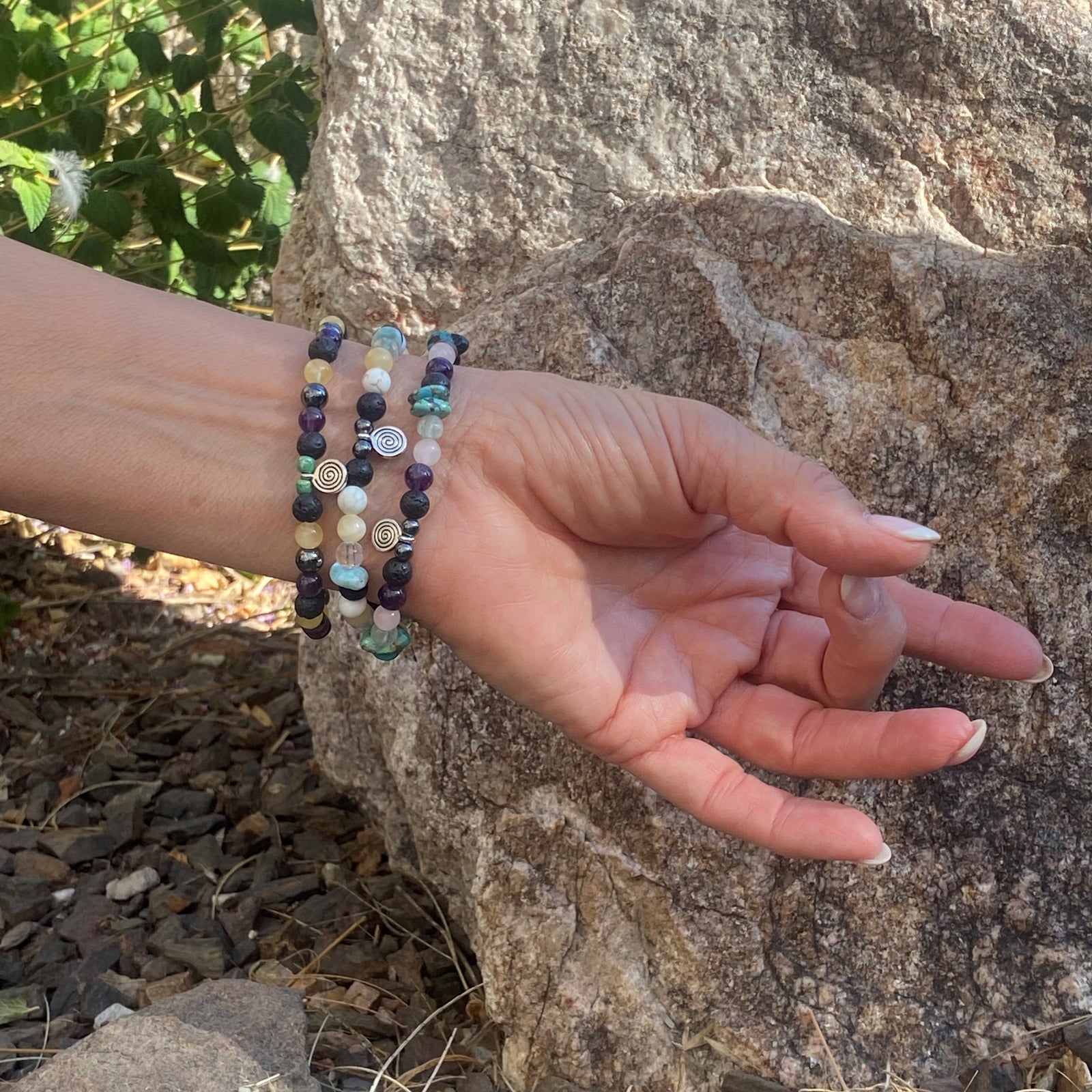 Our Energy Bracelets are handmade with the same gemstones that we specially selected, because of their properties, for our 18 different signature blends and added is oil absorbing lava rock beads. Pretty and effective at the same time. Mix and match as you'll like, between the 18 different styles and 2 size beads. All bracelets are 7.5 inches and fits most wrist sizes.
