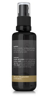 Are you grounded? And if not how can you become more connected to earth, feel more centered, more present and balanced, no matter what goes on around you. Our aromatherapy spray, Grounded, is a bit on the heavy scent side, with all natural essential oils like Budda wood, Balsam of Peru and Myrrh, Grounded is very woody and warm, and the carefully selected gemstones like Smokey Quartz and Hematite among others, makes for a powerful blend that will assist you staying fully rooted, connecting to earth, while you reach for the sky, for all the things you want to accomplish. Feeling grounded will bring you more harmony, happiness and better health. Things that are good to do in order to feel grounded are walking in nature, and where it’s possible, barefoot, do some gardening, dance, do yoga and spend time with your pets, if anyone know how to be in the present it’s your dog, and really being present equals being grounded. As with all our aromatherapy sprays we combine the all natural essential oils with natural spring water and special selected gemstones and use violet glass bottles to maintain the highest energy vibration.