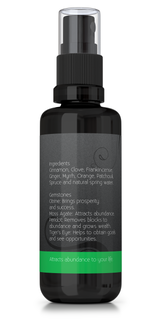 The all-natural essential oils used in the aromatherapy spray, Abundance, are Cinnamon, Clove,