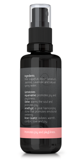 How often do you feel joy? Our flowery, fruity very uplifting aromatherapy spray Joy, with all natural essential oils like Jasmine and Pink Grapefruit, will transport you to blissful moments of pure joy, maybe like you remember feeling as a child, playful and carefree. While using Joy several times a day is sure to make an improvement, there are other things you can do as well to find joy again, first try to let go of past grievances, stand up tall put on a smiley face (even when you are not happy) be present, notice all those little wonders right in front of you . Exercise, take up fun physical activities like dance/Zumba, interact with positive people, create daily rituals that makes you happy and practice gratitude ( yes our Gratitude spray goes hand in hand with the spray Joy) and give back, even if you might not feel you have much to offer, you will by for instance volunteering for a good cause or just giving a friend a helping hand get rewarded by feelings of joy. The essential oils combined with the special selected gemstones, like Rose Quartz and Aquamarine makes this a must have spray to improve feelings of joy on all levels in your life.