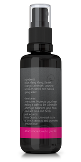 The all natural essential oils in the Love aromatherapy spray are Rose, Ylang Ylang, Sweet Orange, Lavender, Jasmine, Geranium and Neroli combined with natural spring water and the gemstones Adventurine, Amethyst and Rose Quartz (read more about the gemstones below), bottled in violet glass to maintain the highest energy vibrations and to strongly protect the essential oils. This blend will attract more love to your life.